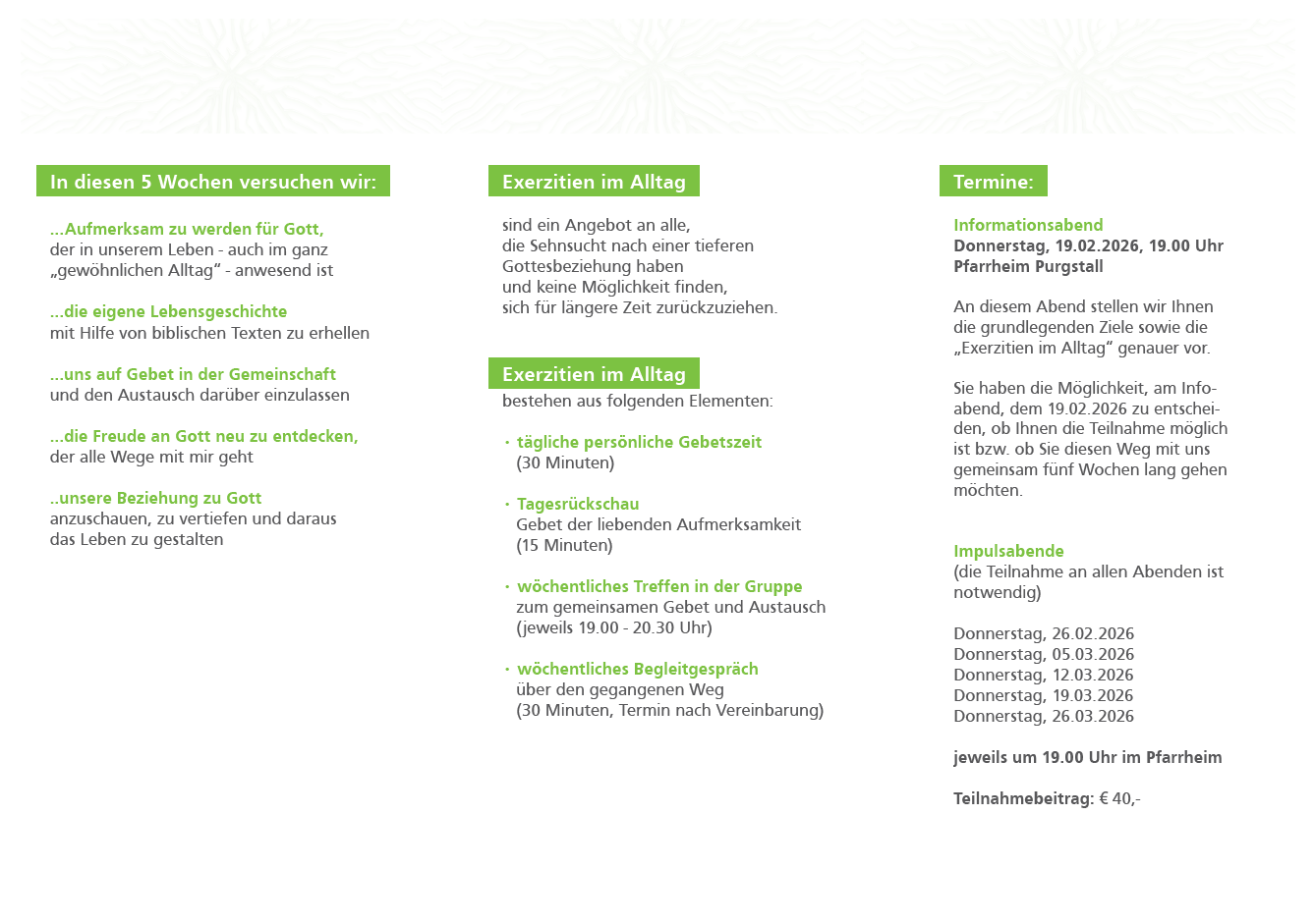Herzliche Einladung, die Info weiterzugeben und zu werben, dass manche, die den Glauben nie aufgegben haben, aber aus Ärger, aus Geldnot oder anderen Gründen ausgetreten sind, wieder eintreten.